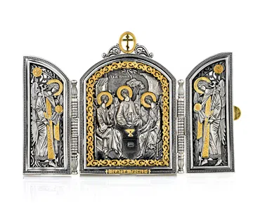 Триптих из серебра отличается своим элегантным дизайном и высоким качеством исполнения. Он идеально дополнит божественный образ и придаст вам неповторимый шарм. Серебряные складни стали популярным презентом среди православных людей.
